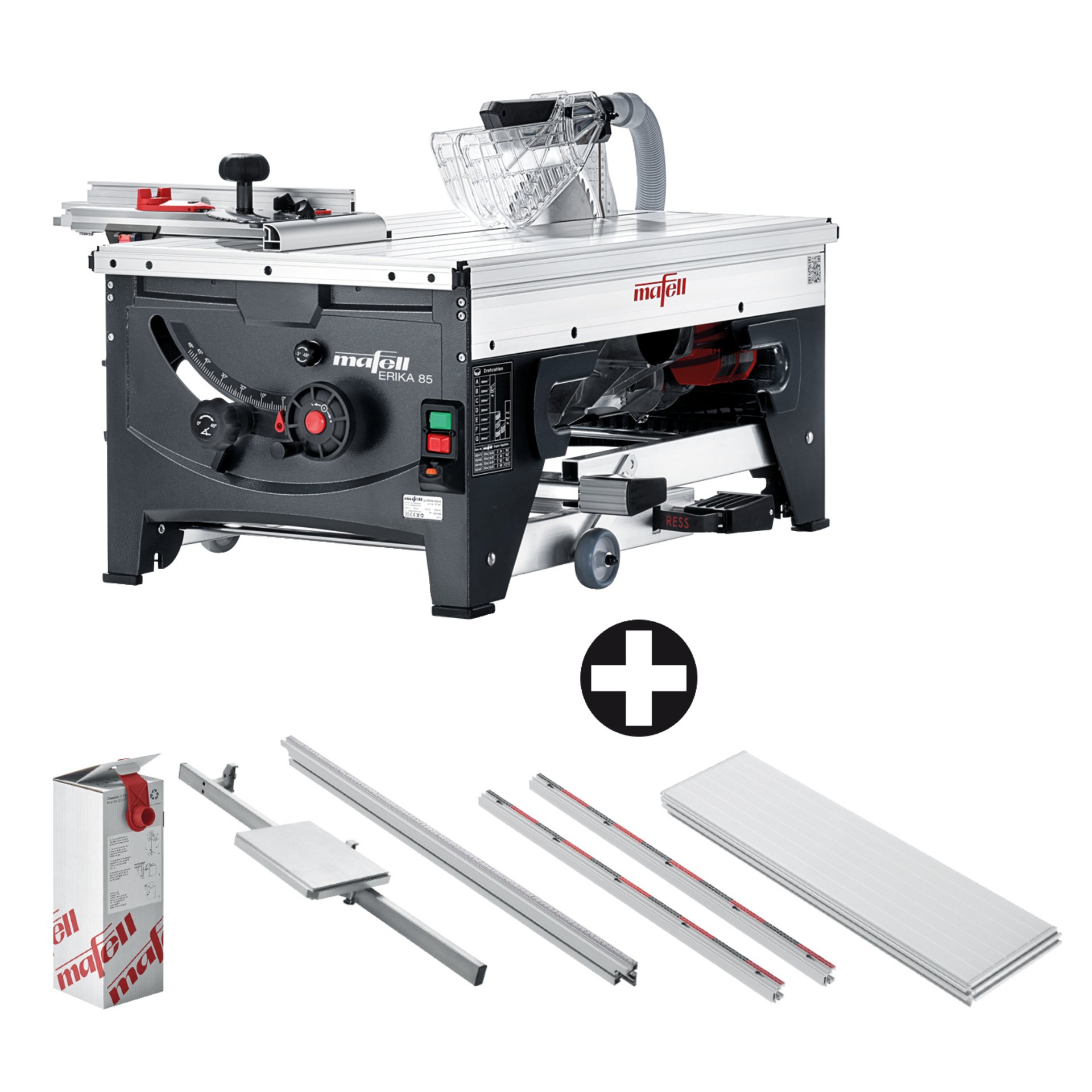 Als weltweit erste Unterflur-Zugsäge ist die ERIKA seit ihrer Einführung zum Inbegriff des mobilen Sägens geworden. Nach fast 40 Jahren Erfahrung hat die aktuelle Generation heute alles an Bord, was die Anwender von einer modernen Unterflur-Zugsäge erwarten. Der integrierte Quickstand stellt die ERIKA innerhalb von Sekunden auf 4 stabile Aluminiumbeine. Schützende Gummistopper an den Füßen vermeiden zudem ein Verrutschen oder Anecken. Der einzigartige Staubkanal bündelt den Sägestaub und führt ihn sicher nach hinten ab. Dank dieser Neuentwicklung wird Ihr Absauggerät noch effektiver genutzt. Ergebnis: Sauberes Arbeiten auf einer sauberen Baustelle! Die Bedienung der ERIKA lässt keine Fragen offen. Klar konzipierte Bedienelemente sind alle logisch an der Vorderseite der Maschine angebracht! Dank der Regelelektronik E-control und dem entsprechenden Original-MAFELL-Sägeblatt ist es möglich, neben Holz auch andere Werkstoffe wie Kunststoffe oder Alu-Profilen zu verarbeiten. Weitere Pluspunkte für die ERIKA 85: Extrem stabiles Tischprofil, Schwenkbereich von -3° bis 48°, ein absenkbarer Spaltkeil und die max. Schnittlänge von 430 mm.