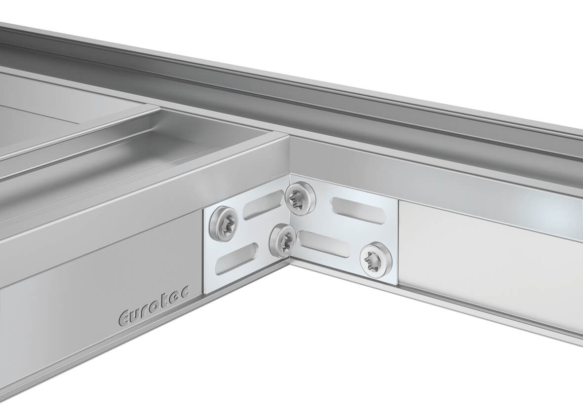 Die Lieferung erfolgt inkl. 4 Bohrschrauben pro Eckverbinder