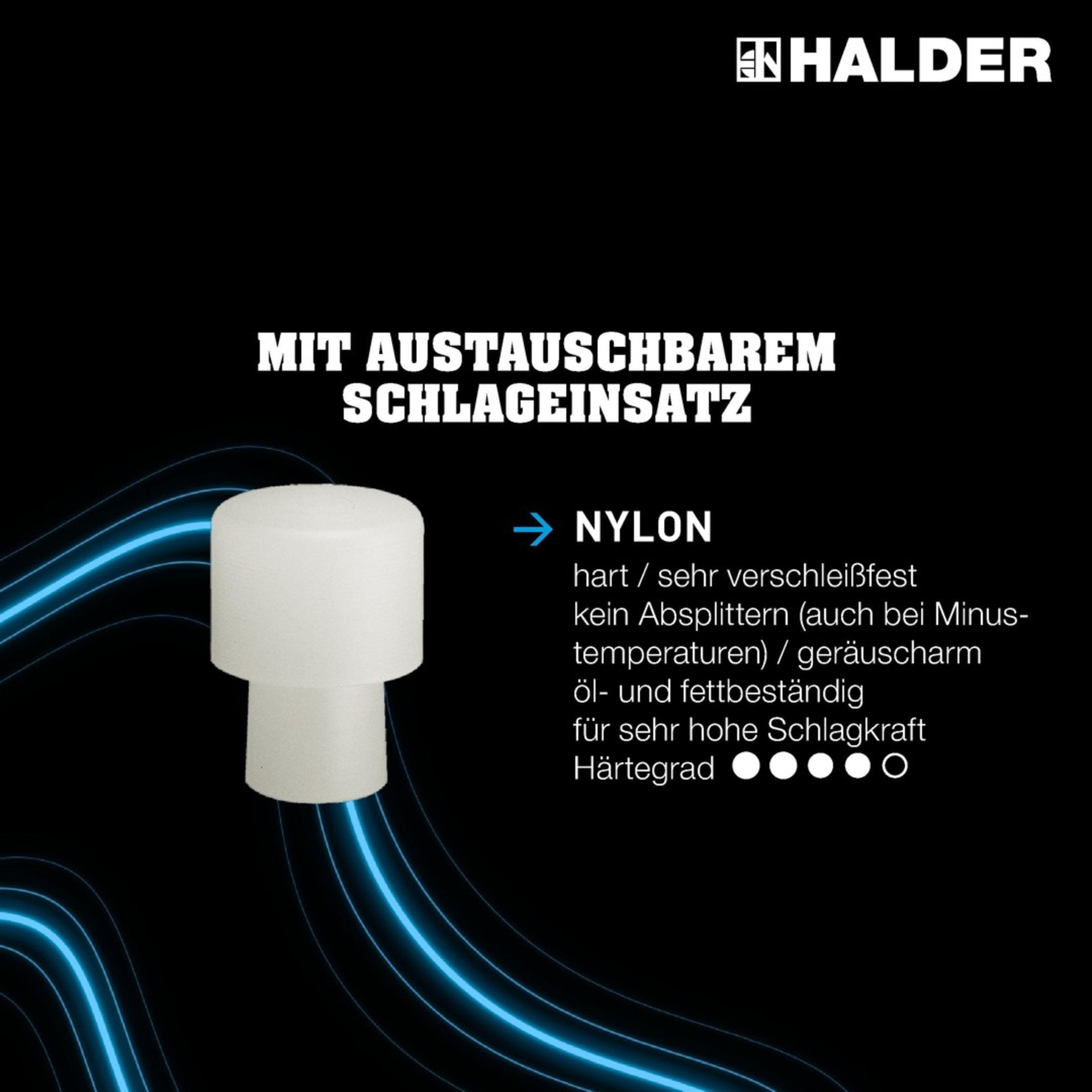 Die Nylon-Einsätze (Serie 3508) sind mit einer Härte von ca. 73 Shore D sehr hart. Diese weißen Polyamid-Einsätze bieten herausragende Schlageigenschaften und garantieren eine maximale Festigkeit mit höchster Langlebigkeit. Sie bestehen aus extrudiertem, extrem homogenem Material. Im Vergleich zu gespritzten Plastik-Einsätzen sind sie dadurch wesentlich verschleißfester und widerstandsfähiger und splittern selbst bei Minustemperaturen nicht. Sie halten den hohen Schlagkräften rückschlagfreier Schonhämmer stand. Zudem sind sie öl- und fettbeständig und werden bei den SUPERCRAFT-Schonhämmern, SUPERCRAFT-Vorschlaghämmern, Durchschlägen und Klopfern eingesetzt.