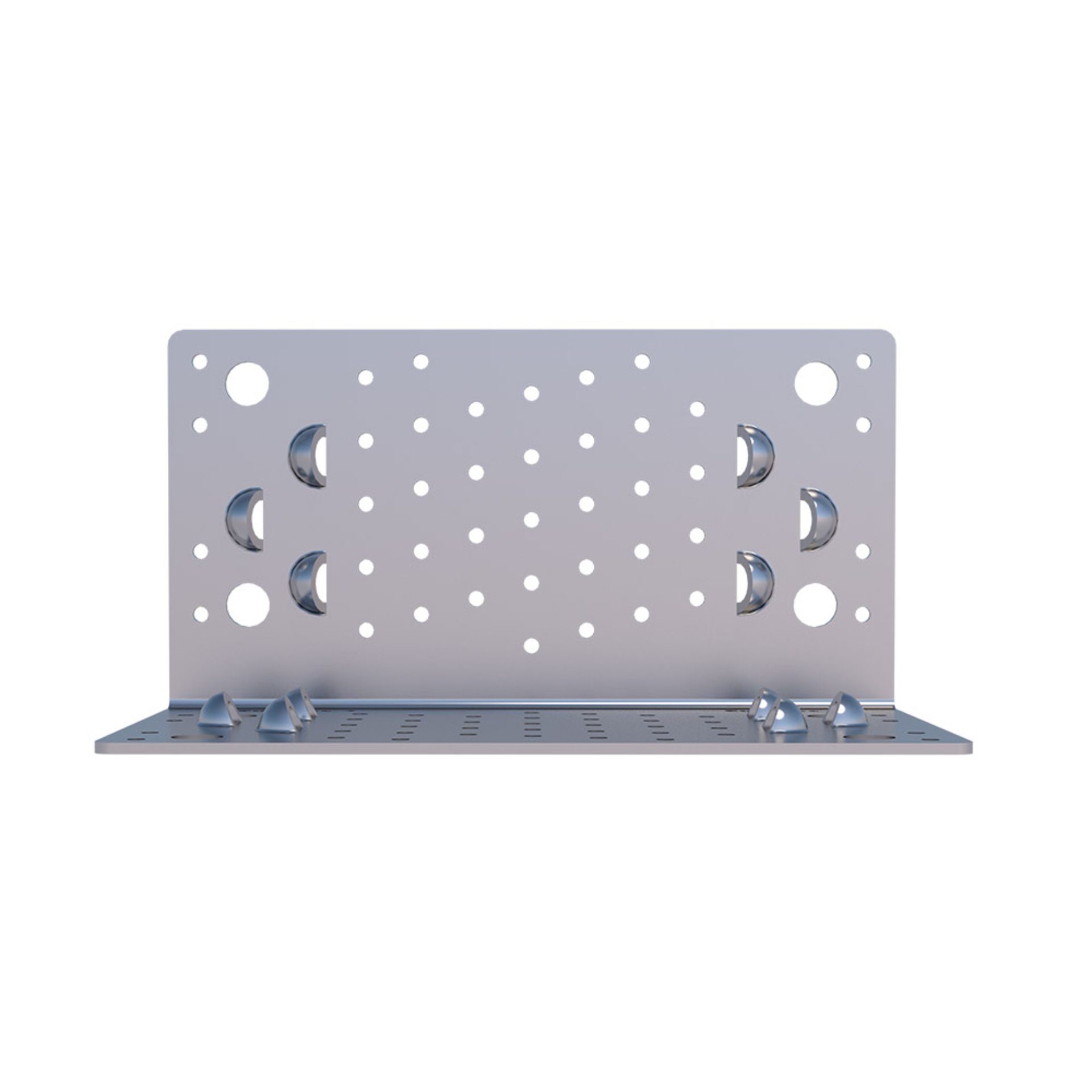 Der wurde speziell für den modernen Holzbau entwickelt und dient als Winkelverbinder, um die Aufnahme von Scherkräften zu gewährleisten. Dies wird durch unterschiedliche Löcher sichergestellt, die zur Befestigung in Beton und Holz vorgesehen sind.