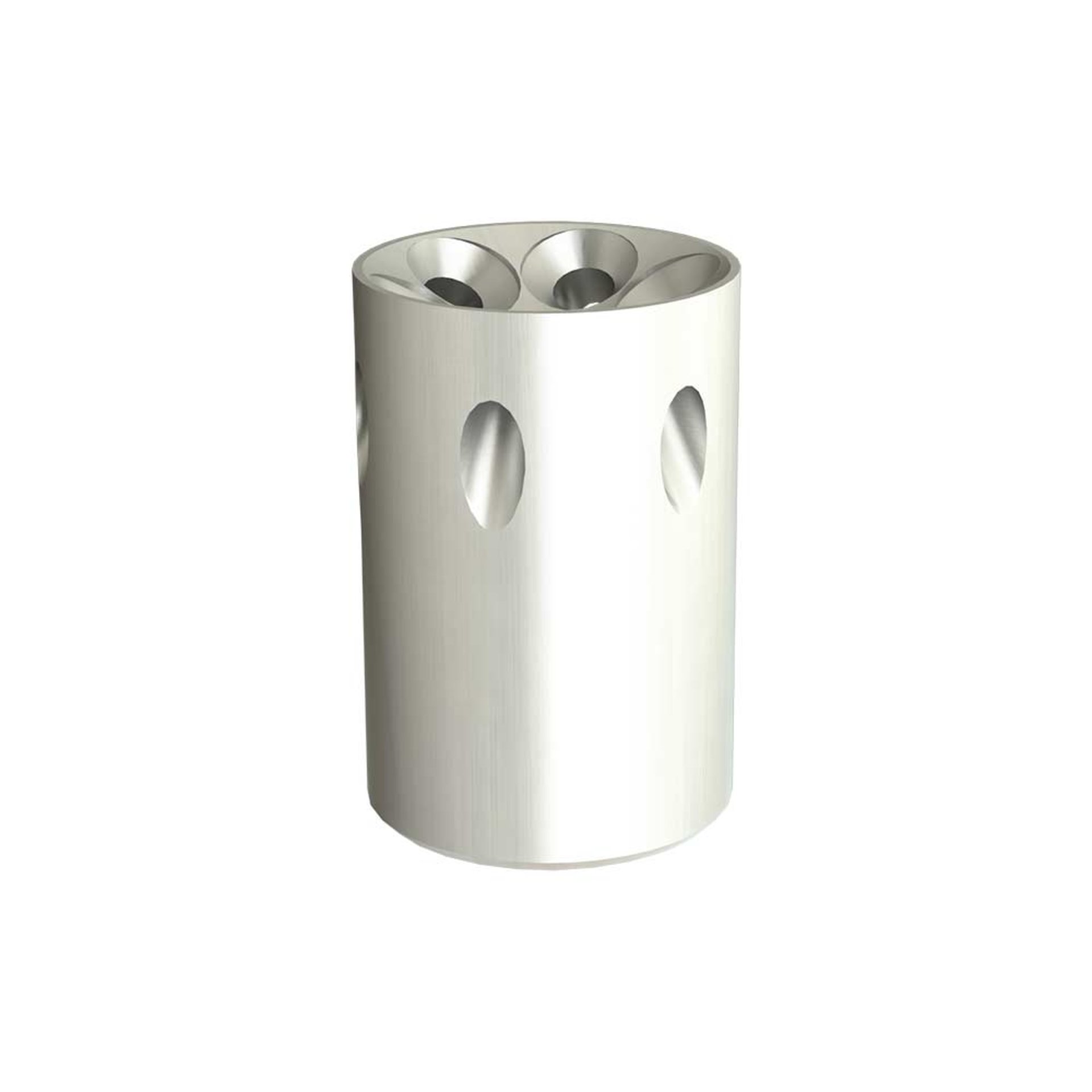 Es besteht aus einem Stahlzylinder, der am Holzbauteil mit sechs 6,5 mm x 100 mm KonstruX Vollgewindeschrauben am Holz befestigt, und einer Bolzenschraube M14 x 100 mm, die über der Verankerung im dem Betonbauteil platziert ist. Die Schrauben sorgen für Rückzugswiderstand und hohe Anfangssteifigkeit. Der obere Bolzen und der zylindrische Teil tragen zur Tragfähigkeit bei.