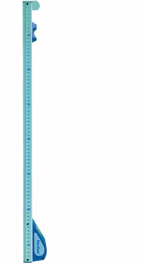 Einfach den Teleskopmessstab anlegen und ausziehen. Das Maß kann bequem auf der Analoganzeige abgelesen werden. Zwei Libellen erleichtern das Ausrichten in horizontaler und vertikaler Lage.