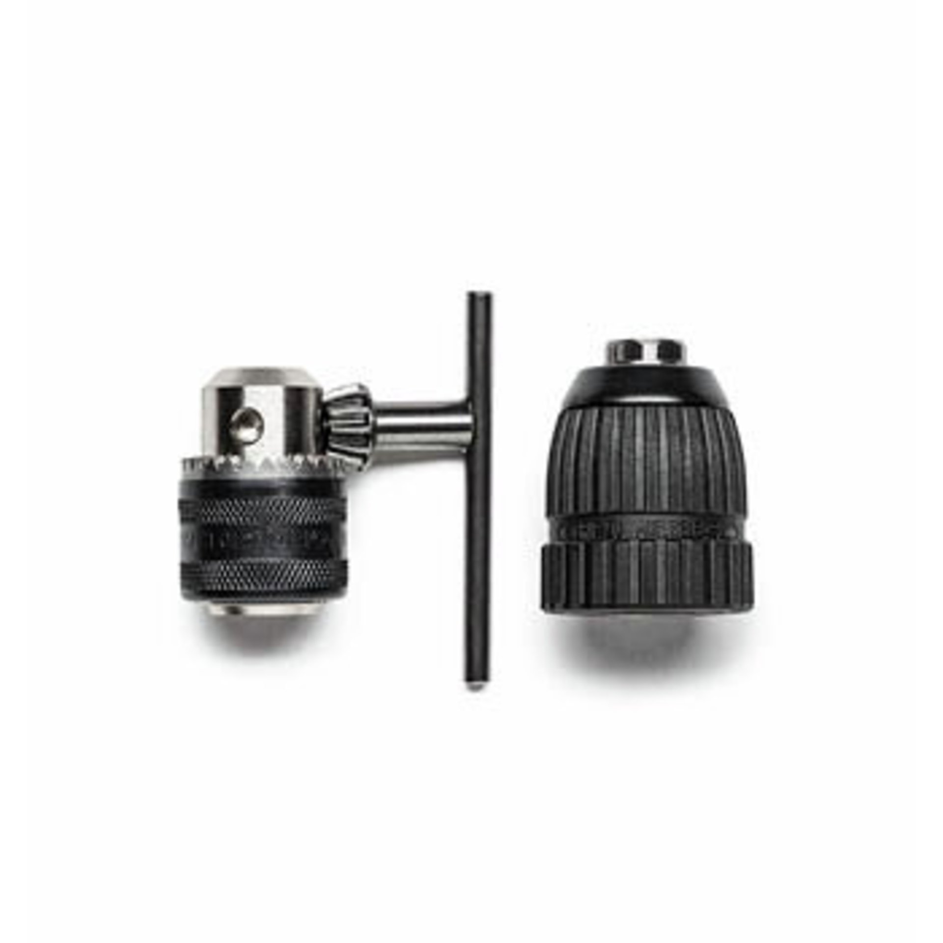 Speziell für leichte Schlagbohrmaschinen entwickeltSchlüsselloses Design ermöglicht schnellen WerkzeugwechselVerwendet eine Doppelhülse mit radialer Verriegelung zur sicheren WerkzeugspannungAusgestattet mit einer Schlüsselfläche für einfache Montage und DemontageDurchbohren mit Feststellschraube für rechts- und linksdrehende Maschinen