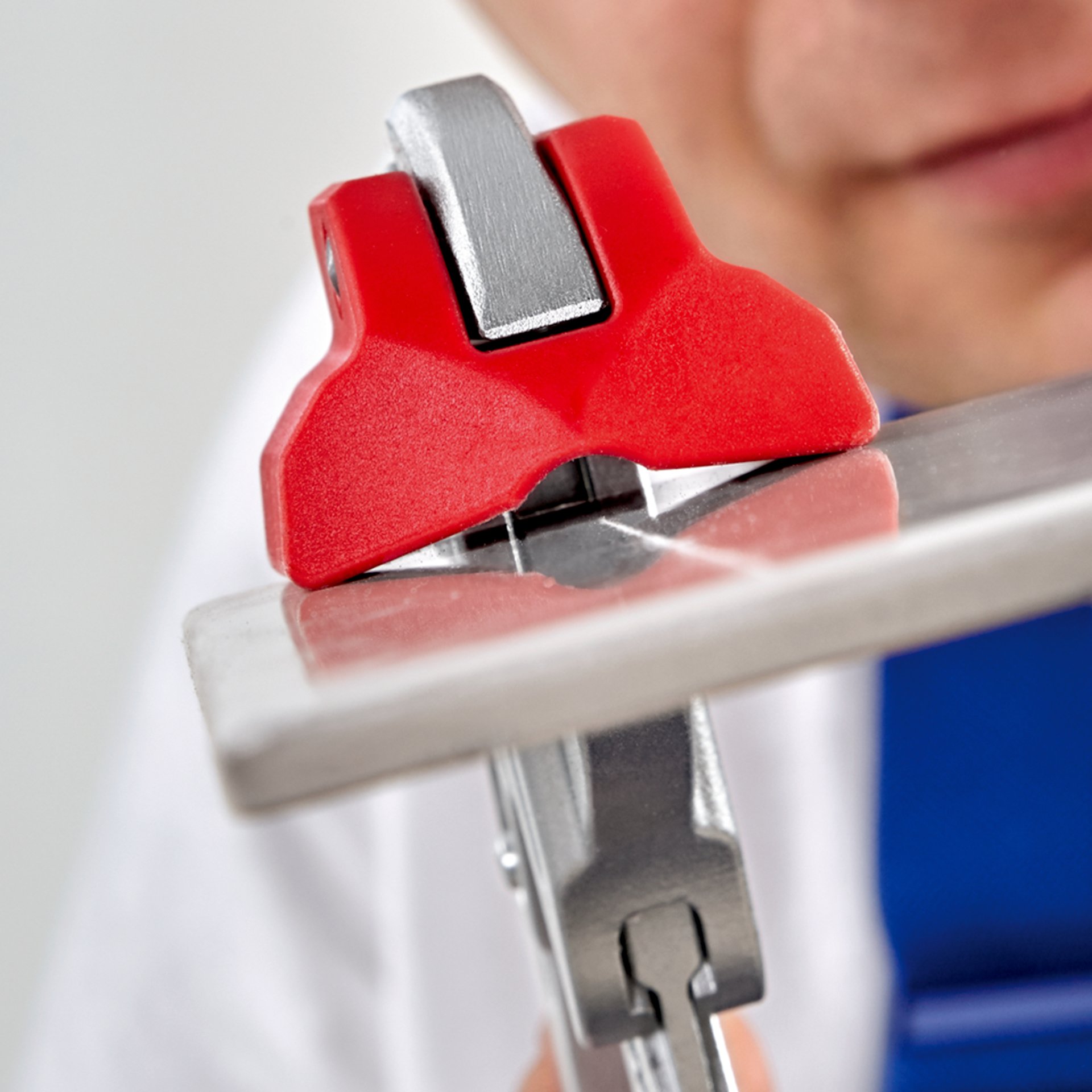 91 19 250 01 Ersatzanlagebacke für 91 13 250 zum präzisen Brechen von Fliesen und Feinsteinzeug nach dem Anritzen mit einem Fliesenschneider. ideal bei langen und dicken Fliesen. Optimaler Schutz der Fliesen vor Beschädigung: austauschbare Anlagebacke aus weichem, stabilem Kunststoff. Große Brechkraft durch 10-fache Handkraftverstärkung. Einfach per Knopfdruck auf die jeweilige Fliesendicke einstellbar.