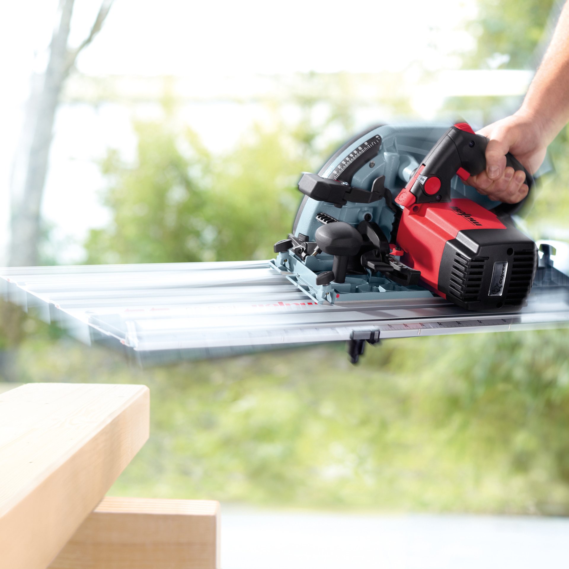 Bei den Kappschienen-Sägen von MAFELL trifft Kraft und Präzision auf Anwenderfreundlichkeit und Ergonomie. Diese Eigenschaften verschmelzen in der Maschine zu einem einzigartigen System. Die Säge wird nach dem Schnitt automatisch in die Ausgangsposition zurückgezogen und bietet bei voller Schnitttiefe eine maximale Schnittlänge von 370mm. Geballte Power und hohe Drehmomente haben einen Namen: CUprex, der Hochleistungsmotor mit leistungsoptimierter Digital-Elektronik und neu entwickelter Steuertechnik. Dabei kann die Drehzahl stufenlos auf unterschiedliche Materialien und Anwendungen eingestellt werden. Es ist kein Abschrauben des Spaltkeils mehr nötig - der FLIPPKEIL bietet Ihnen beim Eintauchen optimalen Benutzerkomfort und Anwendersicherheit.