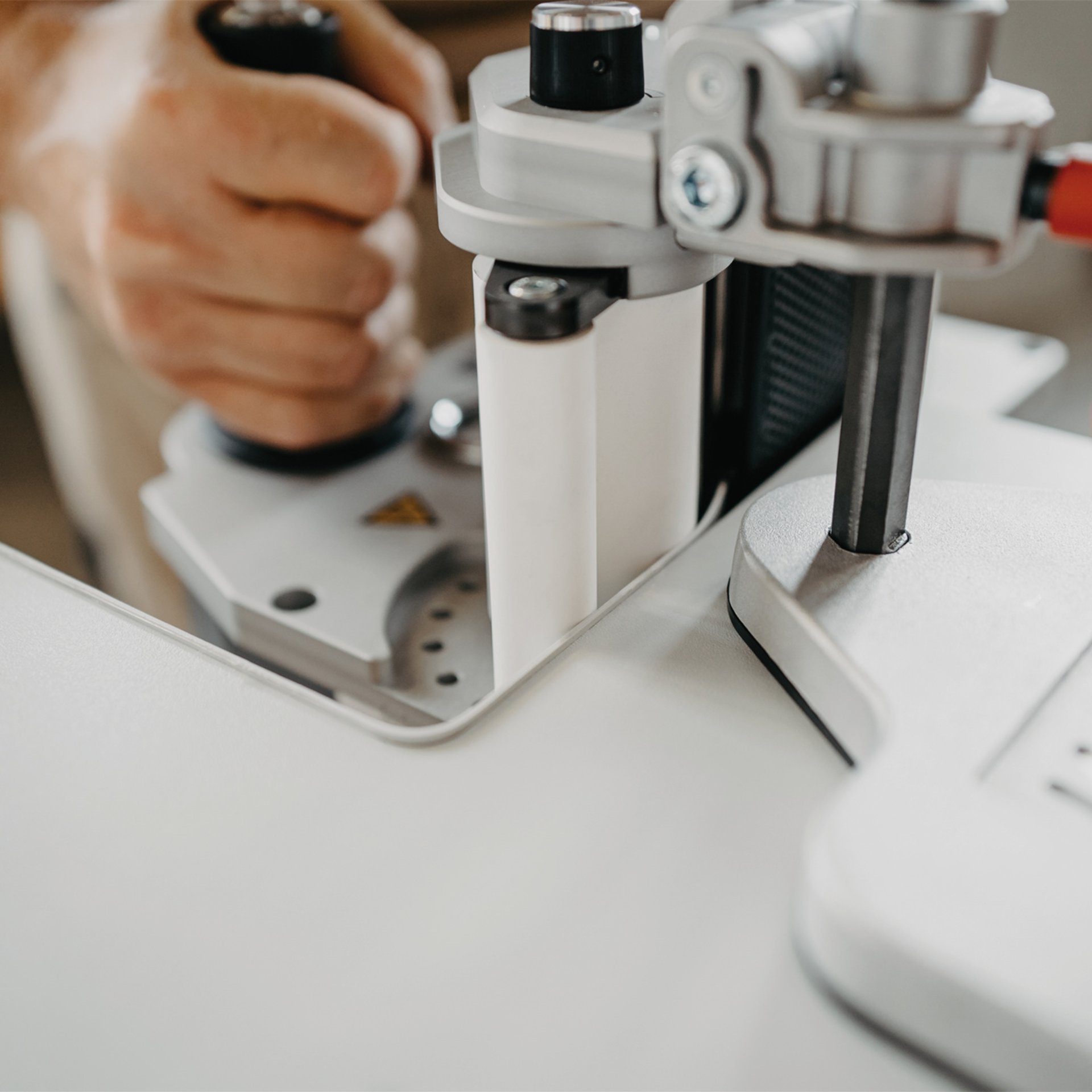 Der HIT-M ist das erste und einzige mobile Gerät zur Erstellung einer optischen Nullfuge. Mit der Heißluft-Injektions-Technik lassen sich alle handelsüblichen Nullfugen-Kanten mit aufgetragener Funktionsschicht bearbeiten - ohne den Einsatz von zusätzlichem Kleber. Der HIT-M ist flexibel einsetzbar und ideal bei komplexen Bauteilen. Speziell bei Freiformen oder engen Radien spielt er seine großen Stärken aus. Es können perfekt gerade, schräge, gekrümmte und runde Plattenwerkstoffe sowie Formteile verarbeitet werden. Schräge Schnittflächen von bis zu 55° sind sehr einfach möglich. Die Arbeitstemperatur wird wenige Sekunden nach Einschalten des Aggregats erreicht. Ein aufwändiger Farbwechsel oder die Reinigung eines Leimbeckens entfallen mit dem HIT-M.