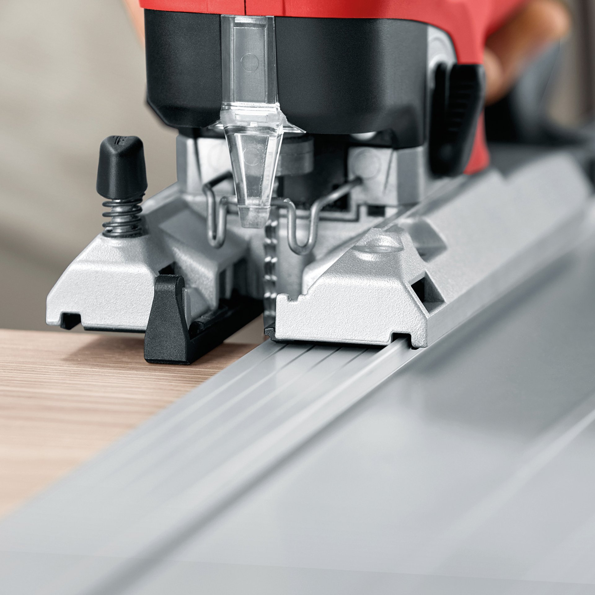 Durch ihr ergonomisches Design mit niedrigem Druckpunkt und Softeinlagen liegt die P1 cc in jeder Situation optimal in der Hand. Dank der ausgefeilten Eigenabsaugung und einer cleveren Freiblaseinrichtung ist die Schnittfläche sogar ohne angeschlossenen Staubsauger immer frei von Spänen. Bei der P1 cc lässt sich zur exakten Anpassung an das Material die Drehzahl von 800 - 3000 Hüben/Min. stufenlos einstellen. Die Grundplatte mit dem integrierten Absaugkanal ist so stabil, wie sie aussieht. Mit dem werkzeuglosen Schnellverschluss ist sie immer exakt rechtwinklig an die Stichsäge angebunden. Das durchdachte Zubehör verleiht der P1 cc eine einzigartige Vielseitigkeit. Besonders das neue MAFELL Präzisionssägeblatt CUnex W1 ermöglicht dank seiner neu entwickelten Bauform einzigartig exakte Schnitte.