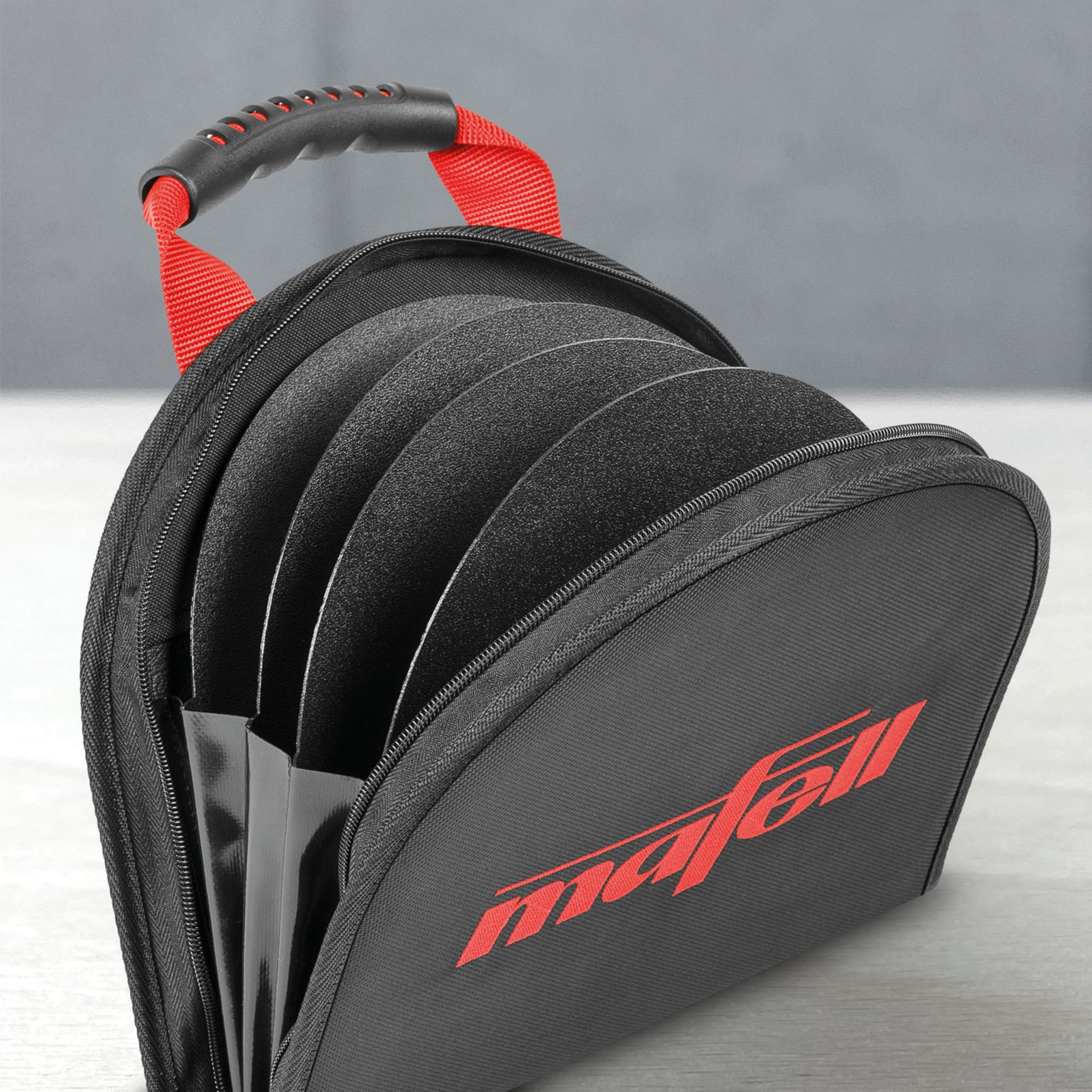 Die Tasche ist platzsparend und passt problemlos in jede Werkzeugkiste oder Werkstatt. Die Tasche ist aus strapazierfähigem, wetterfestem Polyester mit innenliegender Polsterung und schützt somit effektive den Transportinhalt. Die robuste Taschenausführung mit innenliegender Polsterung schützt Deine Sägeblätter effektiv vor äußeren Einflüssen.