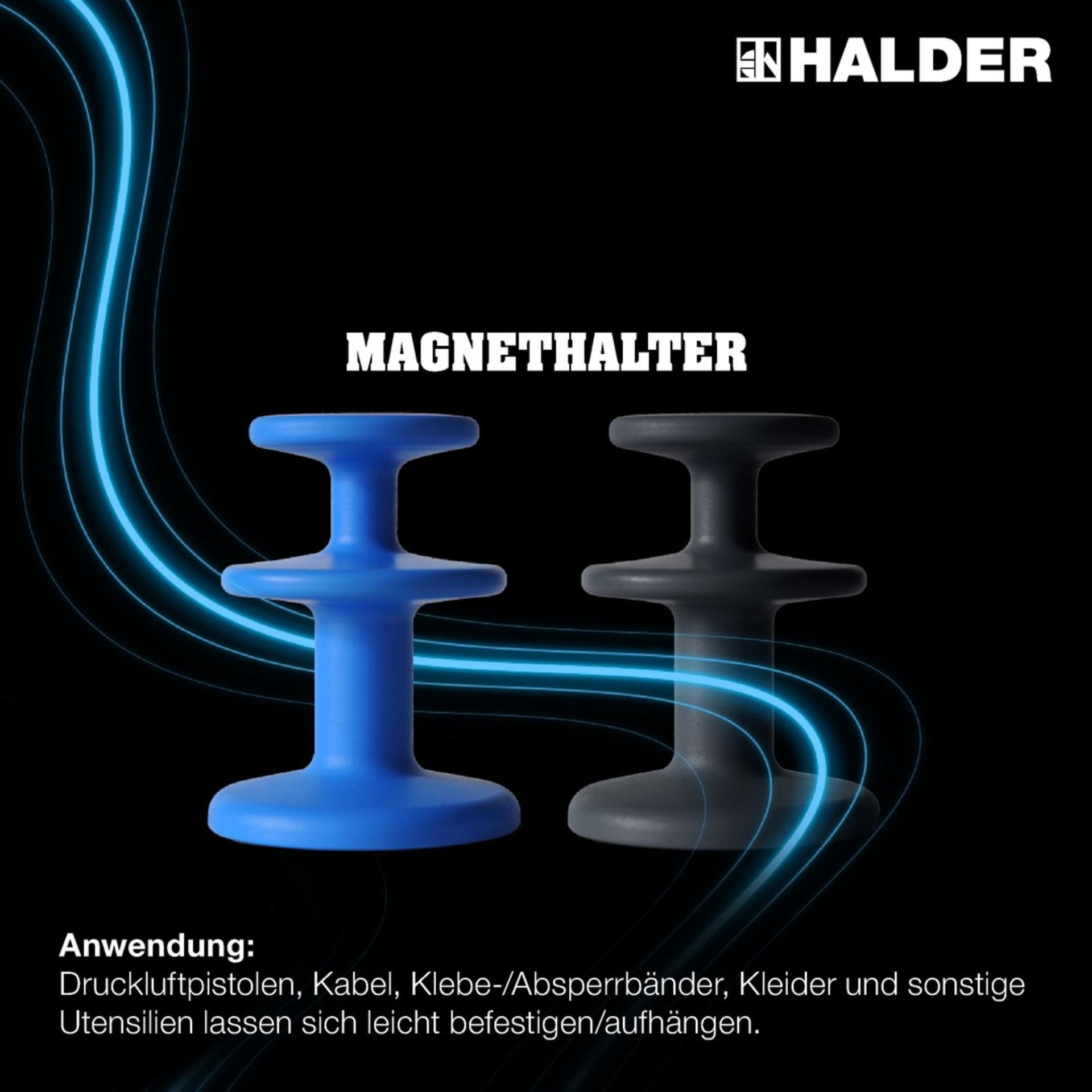 Der Magnethalter von Halder ist eine multifunktionale und flexibel einsatzbare Halterung u.a. für Blaspistolen, Kabel, Schläuche, Kleidung, Absperrbänder und vieles mehr. Die Utensilien lassen sich leicht befestigen/aufhängen, ohne dass der Halter angeschraubt werden muss.