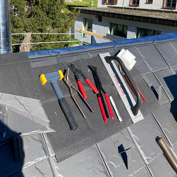 - Mindert das Abrutschen von Werkzeugen beim Arbeiten in Schräglagen (Ziegel-, Falzdach, usw.)
