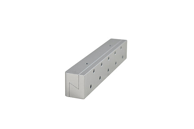 Stufenverbinder eloxiert - Flexibel einsetzbarer Verbinder für den Treppenbau. Galante Optik und hohe Tragfähigkeitswerte bieten eine saubere und funktionelle Verbindungsvariante zur präzisen und schnellen Montage von Holztreppenstufen. Eine Sicherungsschraube Senkkopf DIN 7991 M5 x 25 mm gehört zum Lieferumfang.