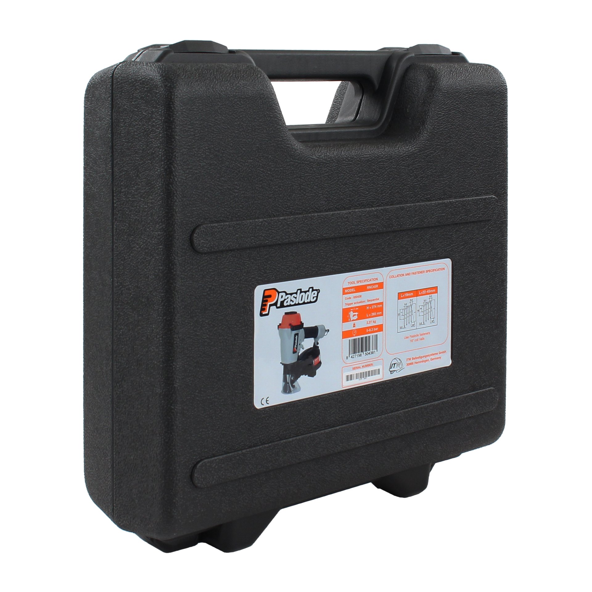 Dachpappnagler, geeignet für große Flächen Spezielle Nase für perfektes Platzieren der Nägel und zur Vermeidung von Oberflächenschäden Leichtes Nagelgerät, komfortabel auch beibei langen Arbeitszeiten Am Nagelgerät angebrachte Gummistützen verhindern beim Ablegen Beschädigungen des Gehäuses Werkzeugfrei verstellbare Eintreibtiefe für eine perfekte Befestigung Umbauset auf Kontaktauslösung ist im Lieferumfang enthalten