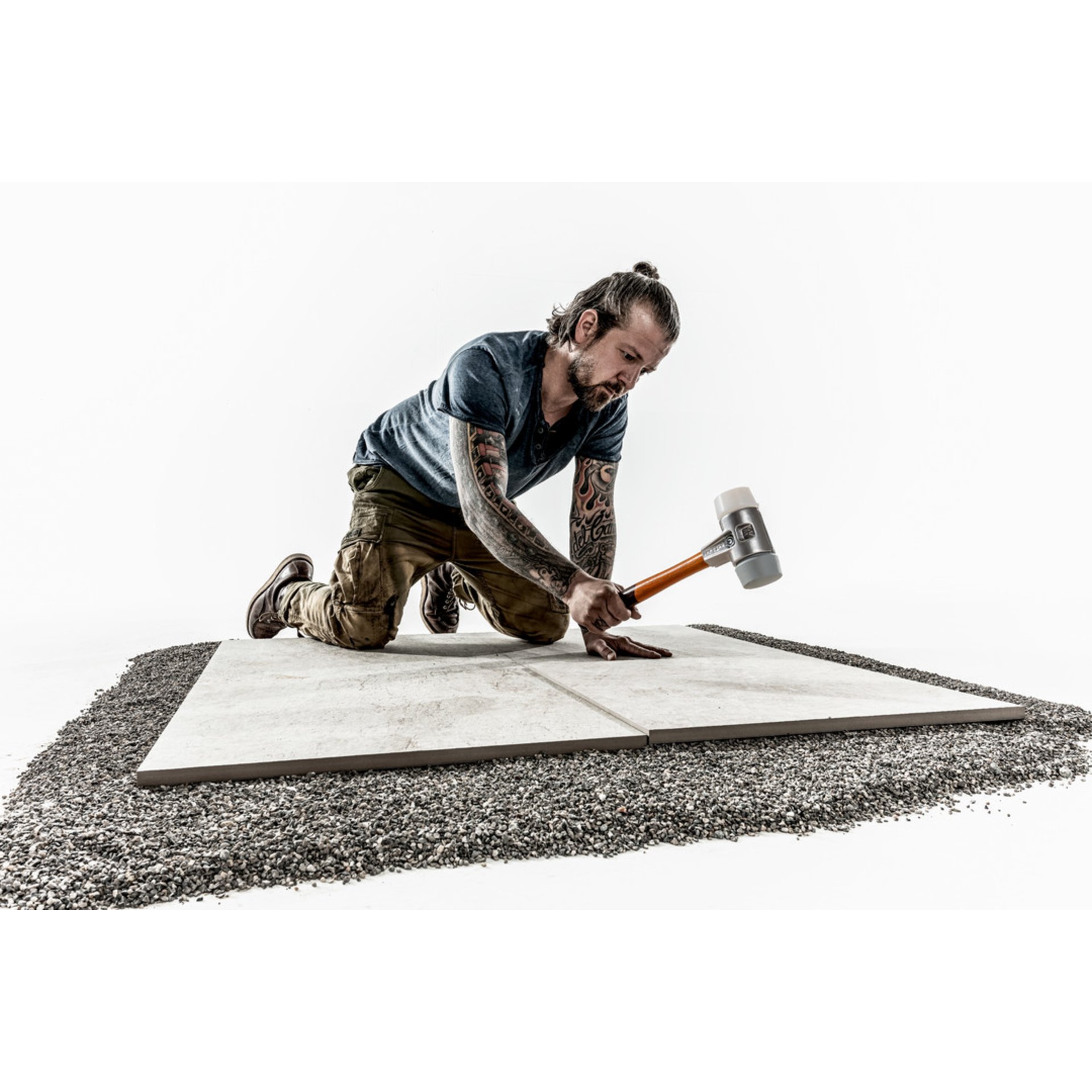 Der mittelharte graue TPE-mid-Einsatz (Serie 3203) ist ein Thermoplast-Elastomer und hinterlässt keinen Farbabrieb, es bleibt im Vergleich zum herkömmlichen Gummihammer kein unerwünschter schwarzer Abrieb zurück. Seine Härte ist vergleichbar mit dem Einsatz Gummikomposition (Serie 3202).