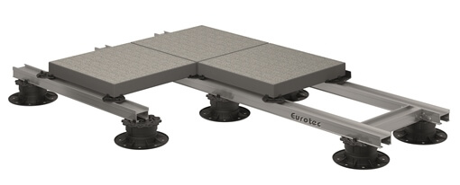 Wer schon einmal eine klassische Steinterrasse gebaut hat, weiß,dass dies mit herkömmlichen Materialien immer mit erheblichem Zeit- und Arbeitsaufwand verbunden ist. Um ein einheitliches Gesamtbild zu erhalten muss jede einzelne Steinplatte aufwendig ausgerichtet werden. Bereits die kleinste Differenz in der Fugenbreite oder der Auflagerhöhe beeinträchtigt das Erscheinungsbild der gesamten Terrassenoberfläche. Mit dem neuen Stone-System von Eurotec reduziert sich der Aufwand für die Konstruktion einer Steinterrasse auf ein Minimum. Sie benötigen lediglich einen tragfähigen Untergrund, das Stone-System von Eurotec und natürlich die gewünschten Steinplatten als Terrassenbelag. Bei diesem völlig neuartigen System werden die Steinplatten mithilfe s.g. Stone-Clips auf einer speziellen Unterkonstruktion aus Aluminium verlegt. Die Aluminium-Unterkonstruktion liegt entweder direkt auf dem Untergrund oder auf verstellbaren Stützenfüßen. Durch die verstellbaren Stützenfüße lässt sich die gesamte Unterkonstruktion äußerst zeiteffizient und unkompliziert ausrichten.